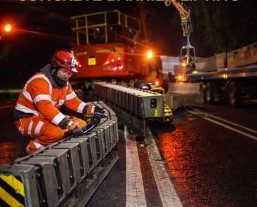 Expert fitting of steel and concrete barriers to keep roads safe.
